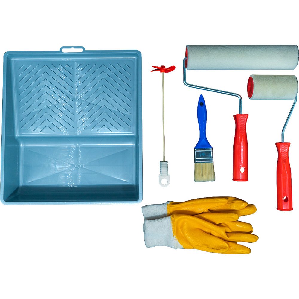 Bu kit; dayanıklı bir boya tepsisi, iki farklı ölçüde yün rulo kılıfı, yüksek kaliteli bir fırça, karıştırıcı uçlu matkap ve eldiven içerir — tamamı Chromalight boyalarla uyumlu çalışacak şekilde özel olarak seçilmiştir.