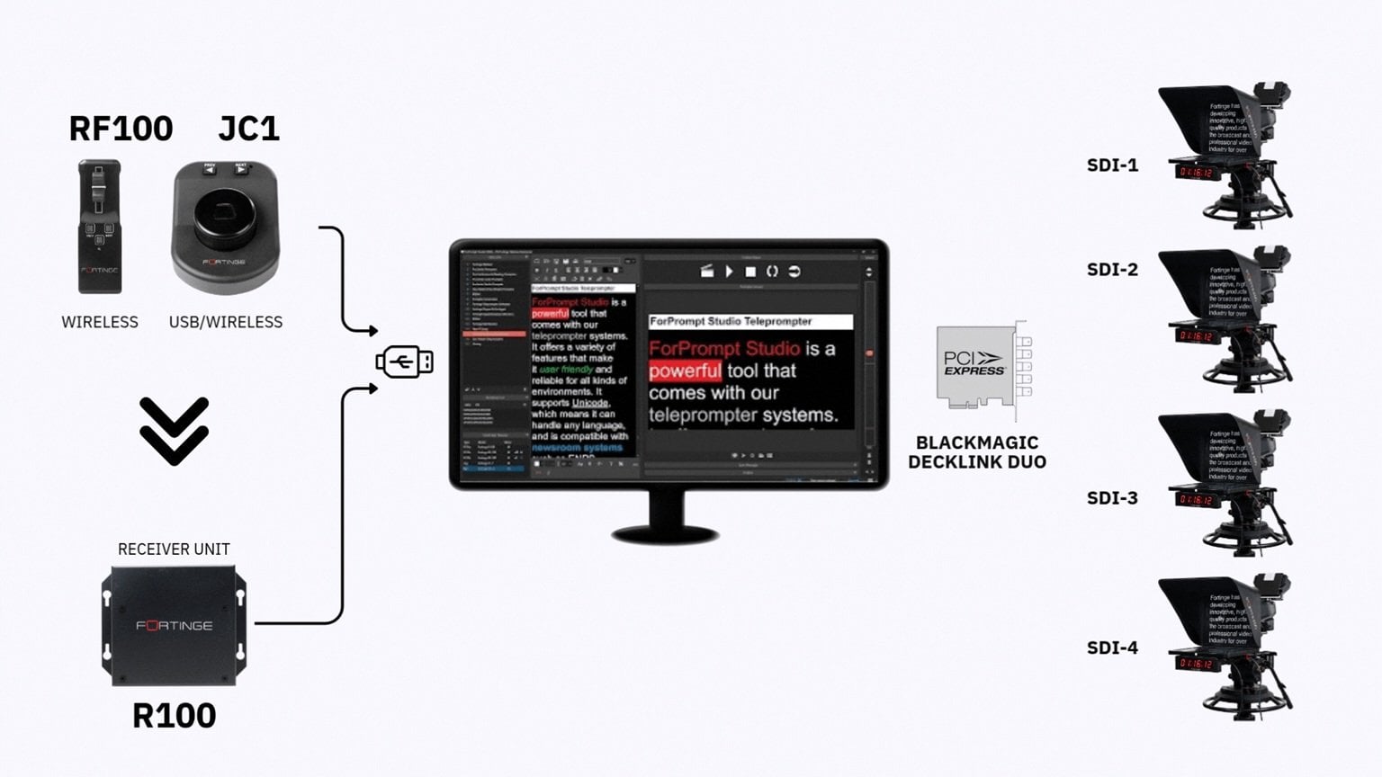 - Sorunsuz Entegrasyon: RF veya USB Fortinge uzaktan kumandalarını doğrudan haber odanıza bağlayın.