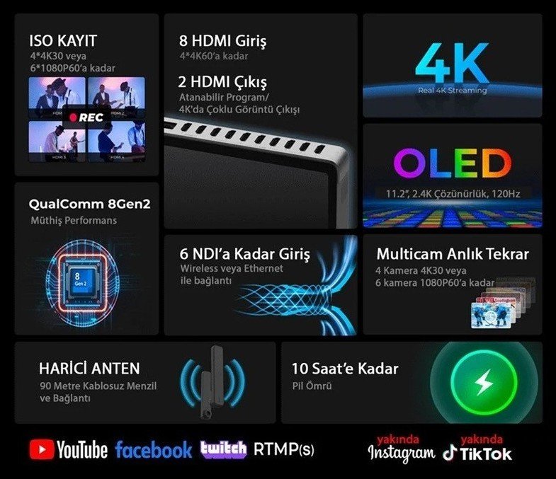 - HDMI, NDI, USB-C ve USB-A Girişleri
